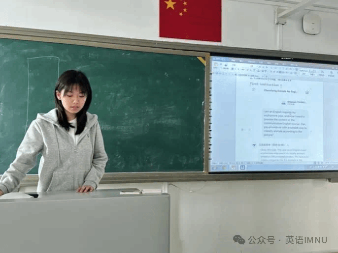 围绕《新交际英语综合教程》“Animals”单元,张老师让学生先集体讨论预习要点,再借助DeepSeek深度预习并记录互动过程。成果展示时,学生汇报思路,老师引导分析差异。