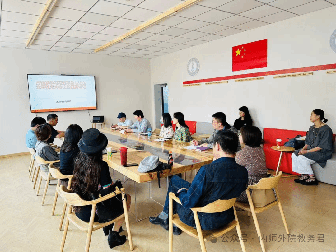 首先日语系全体教师学习了习近平总书记在全国教育大会上的讲话。为践行讲话精神,李红侠老师以日语系课程《理解当代中国》为例,从使用教材、课程内容的角度讲解了日语专业课程中教材融入思政的过程。