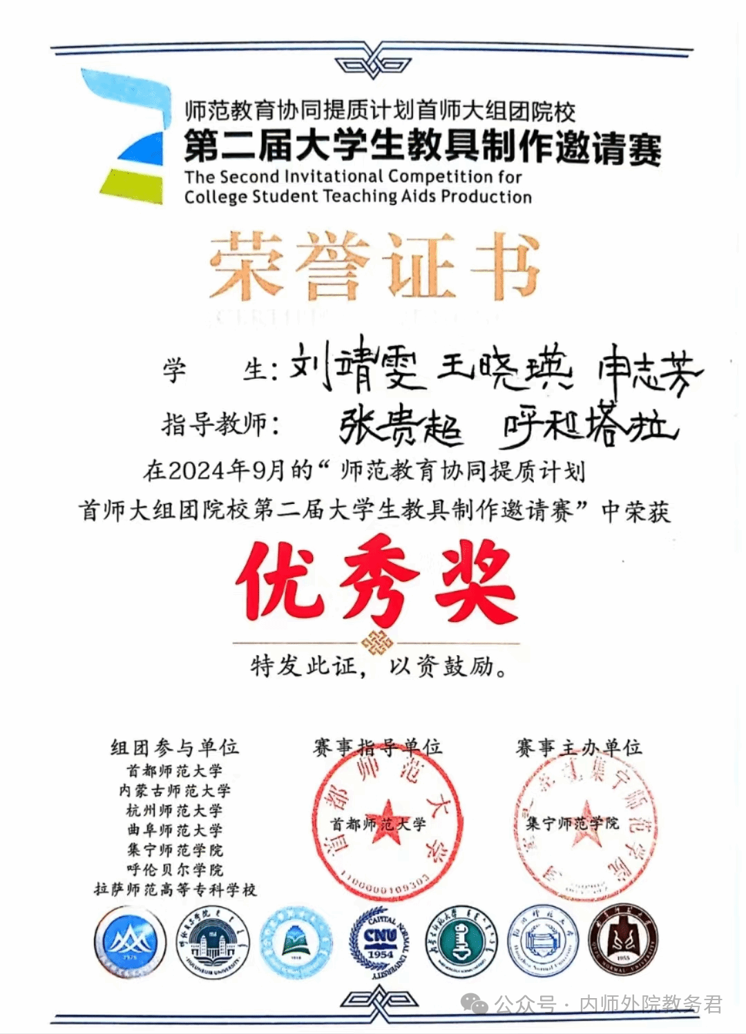 2024年7月,Beat365中文官方网站积极响应教务处下发的《关于举办第四届本科生教具制作大赛暨师范教育协同提质计划首师大组团院校第二届大学生教具制作邀请赛选拔赛的通知》,开展动员,组织本科生报名参赛,成立指导教师小组,对选手参赛作品进行指导。截至报名日期止,共收到参赛作品十九件。经院赛选拔评选,提交五件优秀作品参加校赛。
