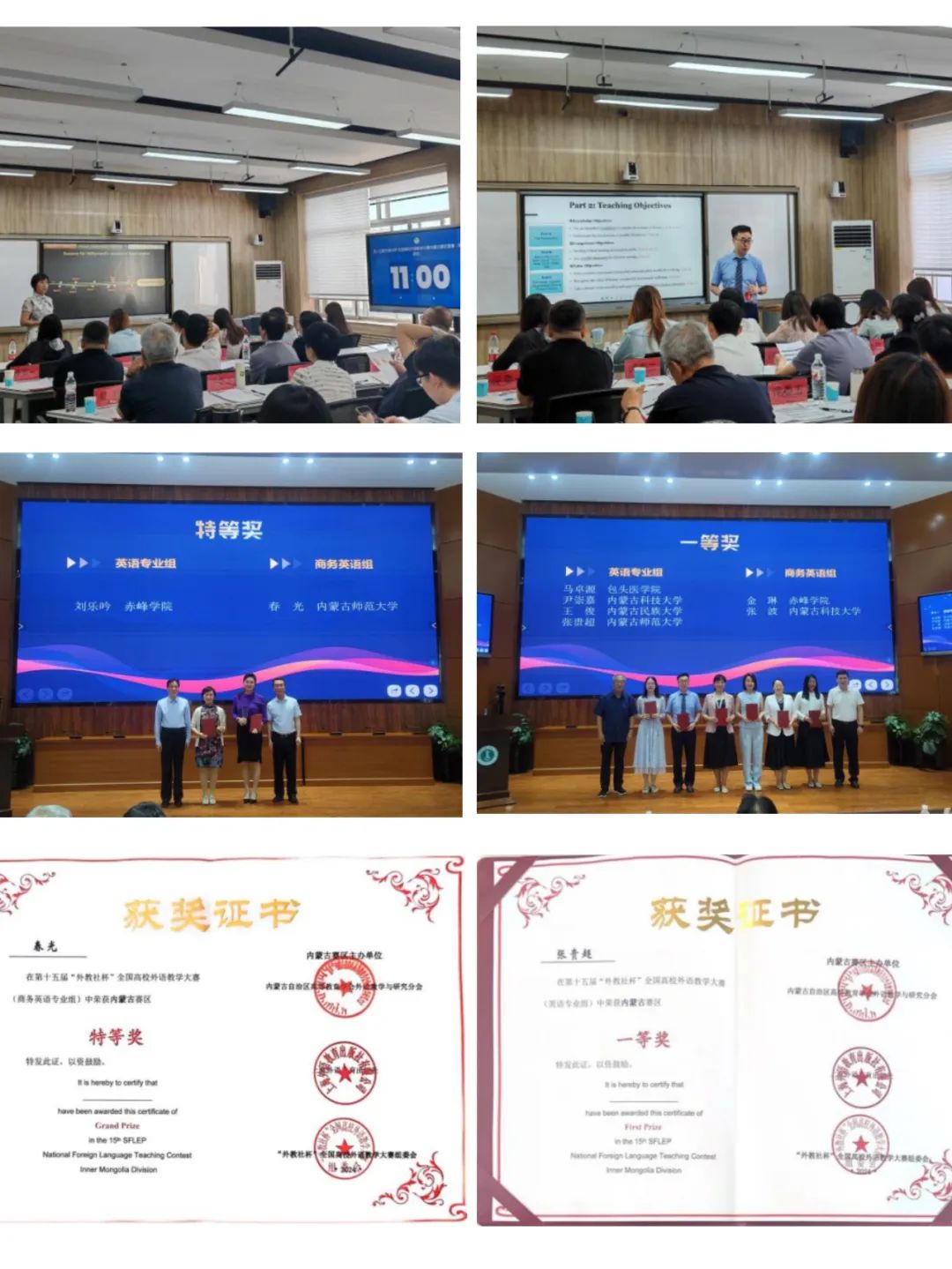 2024年6月29日至30日,第十五届“外教社杯”全国高校外语教学大赛内蒙古赛区复赛和决赛在Beat365官网赛罕校区举行。Beat365官网英语系专任教师春光和张贵超两位老师经过两天的激烈角逐分别获得了商务英语组特等奖和英语专业组一等奖的好成绩。
