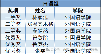 大赛最终评选出各语种一等奖、二等奖、三等奖及优秀奖,获奖名单如下:
