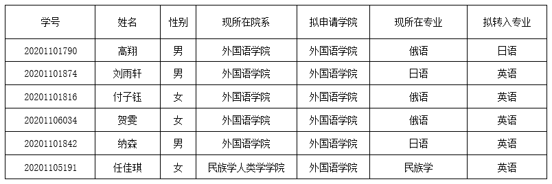 公示期:2021年4月22日—2021年4月24日,如有异议请与转专业领导小组反映。