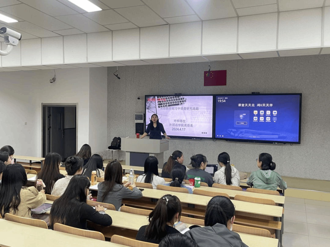 本次讲座题目为“英语教育实习中调查研究选题”。呼和塔拉老师从往届实习生在教育实习中所面临的选题困惑引入,说明了英语教育实习中调查研究选题中存在的如选题偏大、证据不足、选题陈旧等问题,引导学生重视选题的科学性和前沿性,建议学生关注国家时政热点及相关教育政策改革动态。此外,呼和塔拉老师着重介绍了外语教学研究的内涵,帮助同学们充分认知外语教学研究的研究方法、研究过程和研究理念。最后,呼和塔拉老师详细解读了教育调查报告和教育实习研究报告的撰写方法,并对同学们提出的各种疑惑和问题进行了耐心细致地解答和交流。