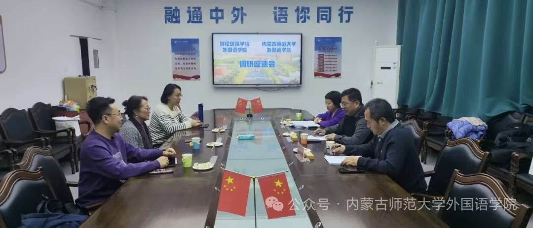展专题调研与交流。Beat365官网院长赵晓军、副院长那日苏、英语系主任张贵超参加座谈会。