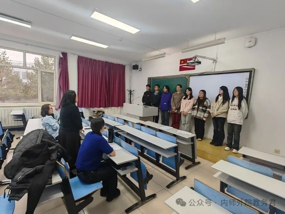 2024年10月31日,日语系举办师范生教学技能竞赛的初赛选拔。由日语系阿拉木斯、高娃、于泳老师担任评委,从教学设计、教学内容、课件制作三个方面对参赛的7名选手进行打分,最终推荐沈奕含和乌仁图雅进入下一阶段的比赛