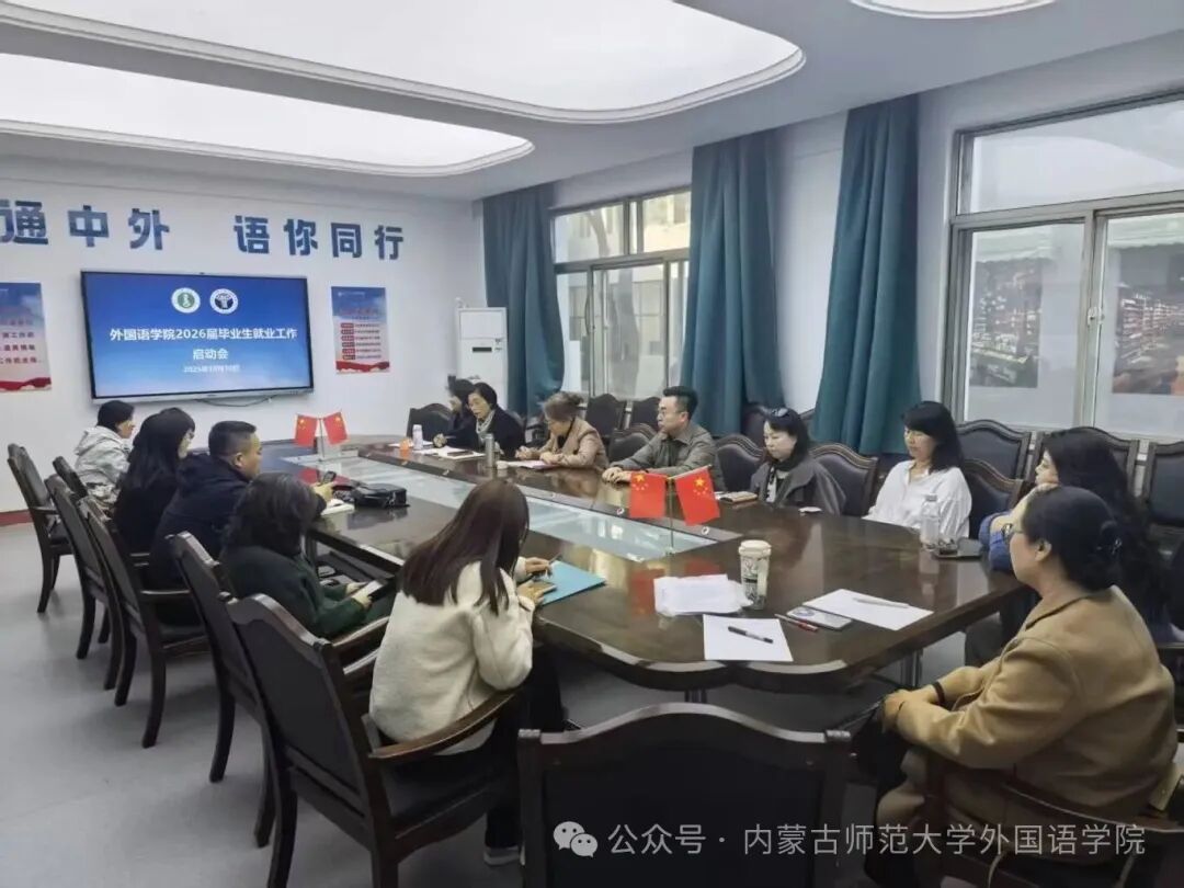 2025年10月30日,Beat365官网在赛罕校区田楼106会议室召开2026届毕业生就业工作启动会。学院院长赵晓军,副书记、副院长李艳茹出席会议,各系主任、学位点主任、团学辅导员及2026届毕业班班主任全员参会,共同为下一阶段就业工作谋篇布局、明确方向。