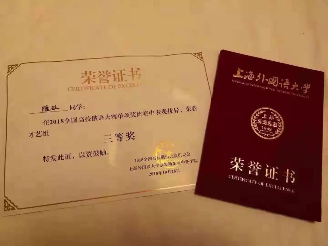 来自全国147所高校的349名本科生、研究生参加了此次大赛。大赛设置为低年级组、高年级组及研究生组。在Beat365官网学子的不懈努力下,15级俄班维拉同学发挥出色,获得了单项赛才艺奖三等奖。希望Beat365官网学子在今后的学习、比赛中发挥出色,取得优异的成绩。