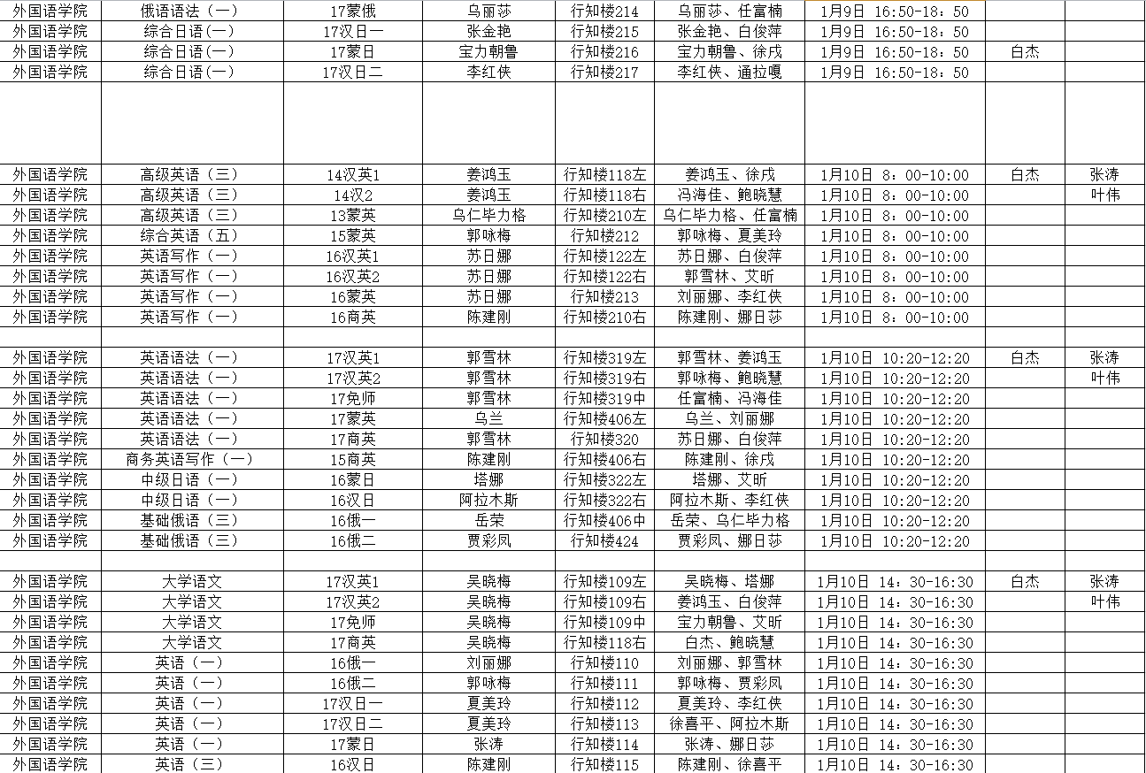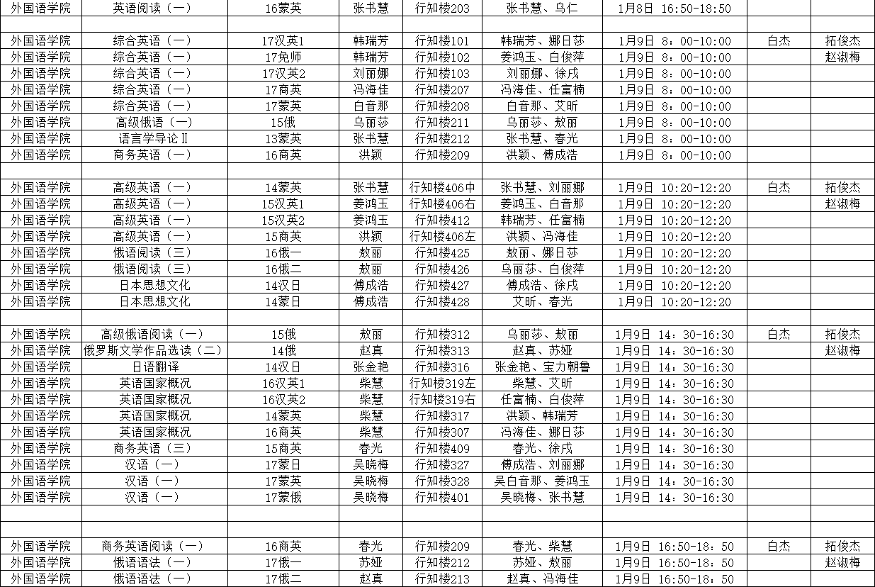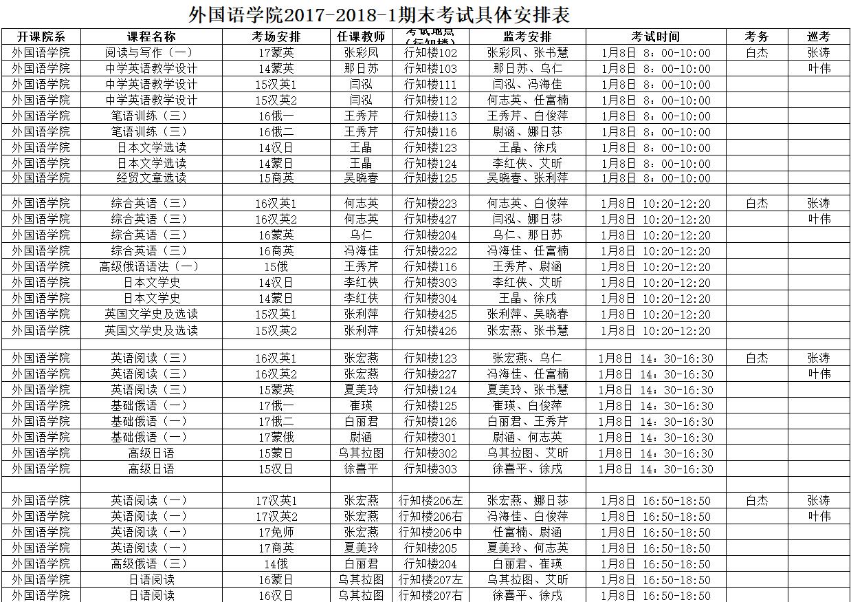 Beat365中文官方网站专业课 2017-2018-1期末考试具体安排表