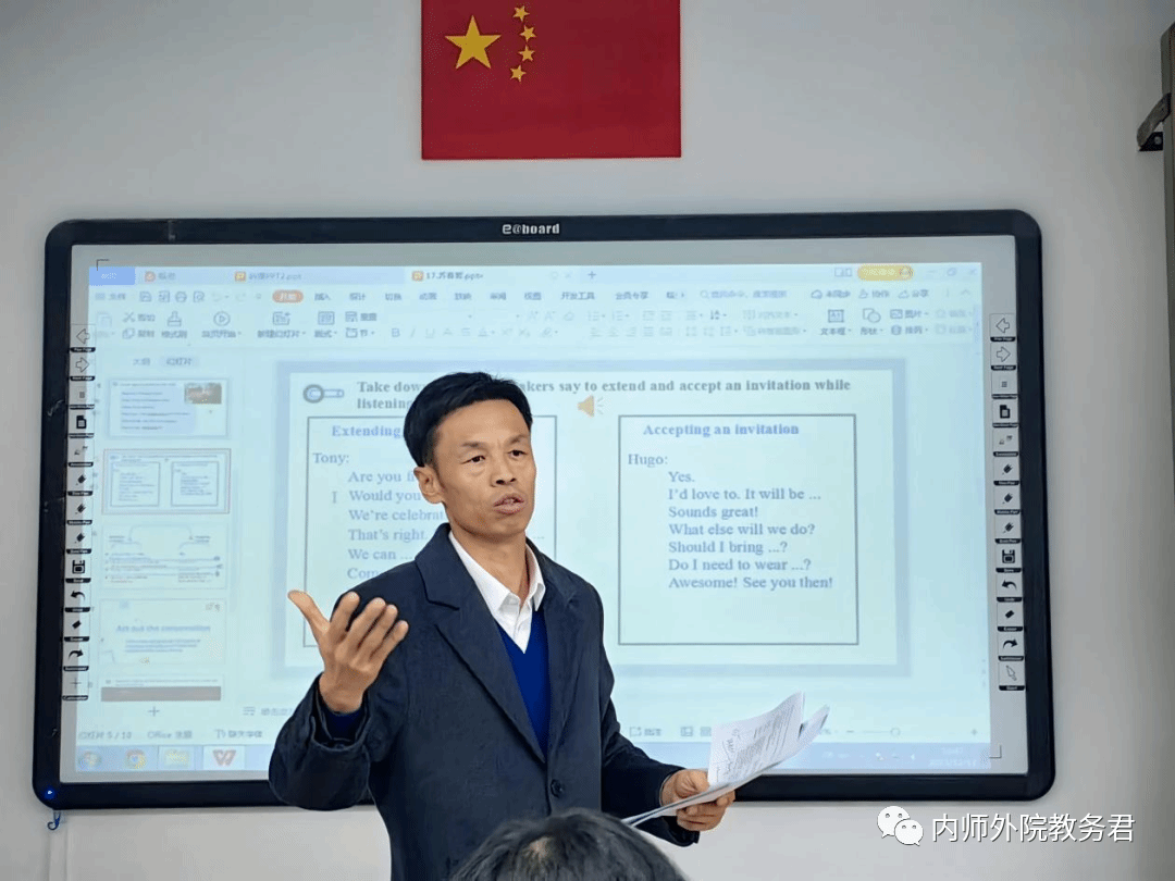 阿力更老师首先介绍了2023年英语(师范)专业教育实习的基本情况:本次教育实习由20级英语(师范)方向的153位同学参加,实习周期为8周,校内指导教师34人,校外指导教师166人,实习基地校分布于区内11盟市和北京市。实习期间,我系教师吴晓春、郭玺平、呼和塔拉、阿力更等教师还走访了Beat365中文官方网站附属学校和赤峰地区十余所中小学,多方面、多维度地了解实习生的实际表现,同时也收到了实习基地校领导和实习指导教师对我系实习生的高度评价。在本次教育实习中,实习生们顺利地完成了本次实习任务,在教学能力、口头表达、人际沟通等方面得到了锻炼和提高,本次教育实习圆满完成。