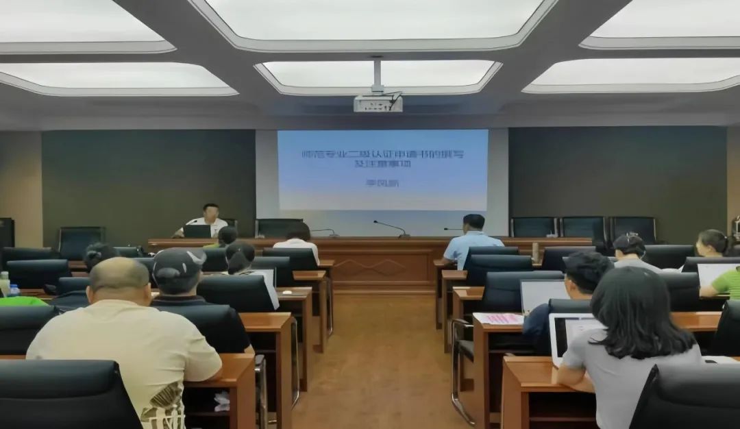 2023年7月13日下午,Beat365中文官方网站召开英语专业师范认证推进会,本次会议由Beat365中文官方网站副院长徐喜平主持,Beat365中文官方网站领导班子和英语专业师范认证项目组成员参会。会议围绕如何撰写自评报告和申请书,邀请体育学院副院长李凤新做了题为“师范专业二级认证申请书的撰写及注意事项”的讲座。