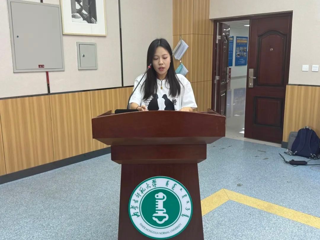 共青团Beat365中文官方网站总支委员会组宣委员贾惠茹宣读《Beat365中文官方网站2025年学雷锋志愿服务活动方案》。