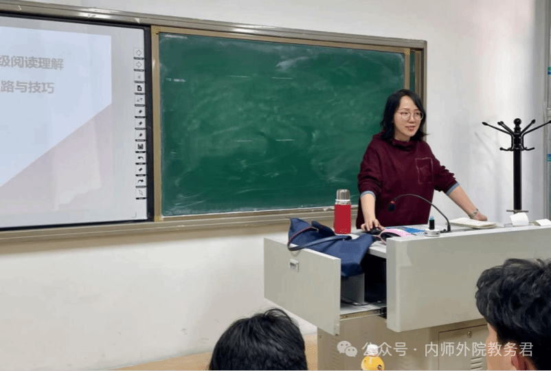 郭雪林老师从专四写作的测试要求、评分标准及评分细则入手,详细分析了考试对篇章组织与语言运用能力的要求。他结合实例重点讲解了材料类作文的写作方法,从提取中心句到仿写技巧,逐一拆解写作过程中的关键环节,帮助同学们掌握高分作文的写作思路与技巧。